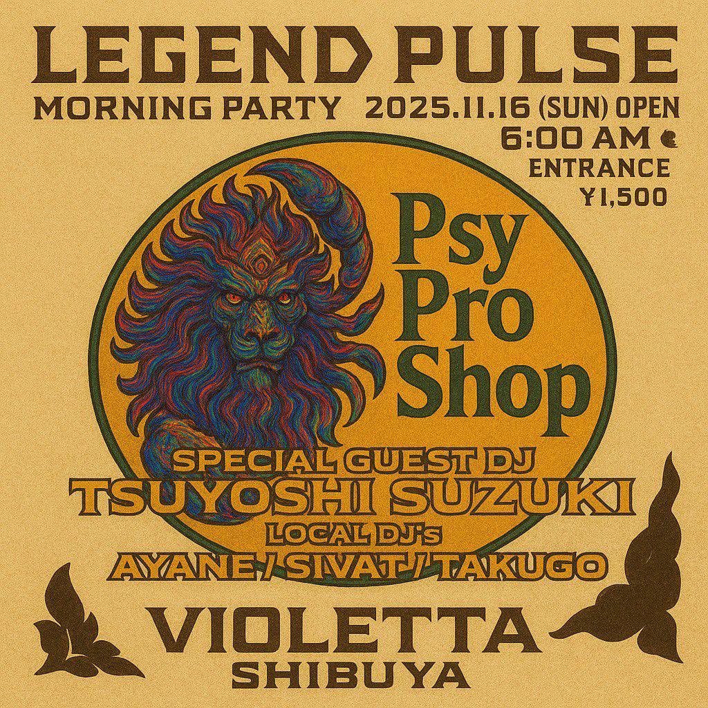2025年11月16日(日)、早朝6時より渋谷「Violetta Shibuya」にて、スペシャルなモーニングパーティー “LEGEND PULSE” が開催されます